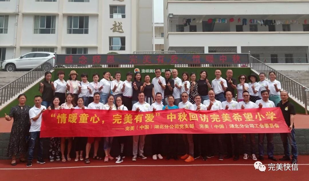 在中秋佳节来临之际,完美湖北分公司带领经销商代表于9月6日、9日、10日分别前往湖北麻城、红安、长阳三地开展主题为“情暖童心 完美有爱”回访希望小学系列活动,为学校师生送去节日祝福!