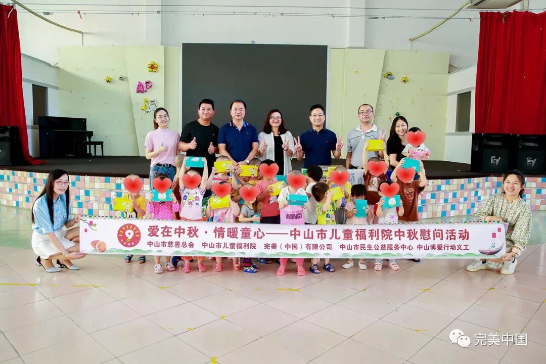 9月6日,在中秋节来临之际,完美(中国)有限公司联合中山市慈善总会、中山市儿童福利院等组织开展“爱在中秋·情暖童心”——中山市儿童福利院中秋慰问活动,为孩子们送上完美精心定制的月饼,祝福他们过上一个幸福快乐的中秋佳节。 完美团委、康体会代表公司带着满满的爱心走进儿童福利院,为孩子们送上220盒月饼、牛奶、饼干等慰问品,让福利院孩子感受中秋节的味道,以及爱心企业的温暖和关爱。 对于福利院的孩子们来说,常人眼中再平常不过的月饼就是他们节日里稀罕的珍宝。孩子们把月饼紧紧捧在手心,脸上绽放灿烂的笑容,眼里闪耀着幸福的光芒,纷纷感谢叔叔阿姨们的热心善举。 中山市儿童福利院院长何文彬表示,完美公司是中山著名侨资企业,自成立以来积极支持中山市慈善事业,也多次获得中华慈善奖等重要国家公益奖项,感谢完美公司为孩子们带来了爱心和温暖。 完美公司董事长助理、团委书记徐奕新表示,中山市福利院为孩子们创造了温暖的港湾,衷心祝愿小朋友们健康快乐地成长。完美公司扎根中山,董事长古润金具有浓厚的慈善情怀,在他的带领下,完美人秉持“取之社会,用之社会”理念,积极支持公益事业。 这批造型特别、讨人喜欢的月饼,是完美公司为孩子们专门定制的中秋节礼物,除了捐赠给福利院小朋友,也将捐赠给各地的孤残儿童,让他们感受社会的温暖。