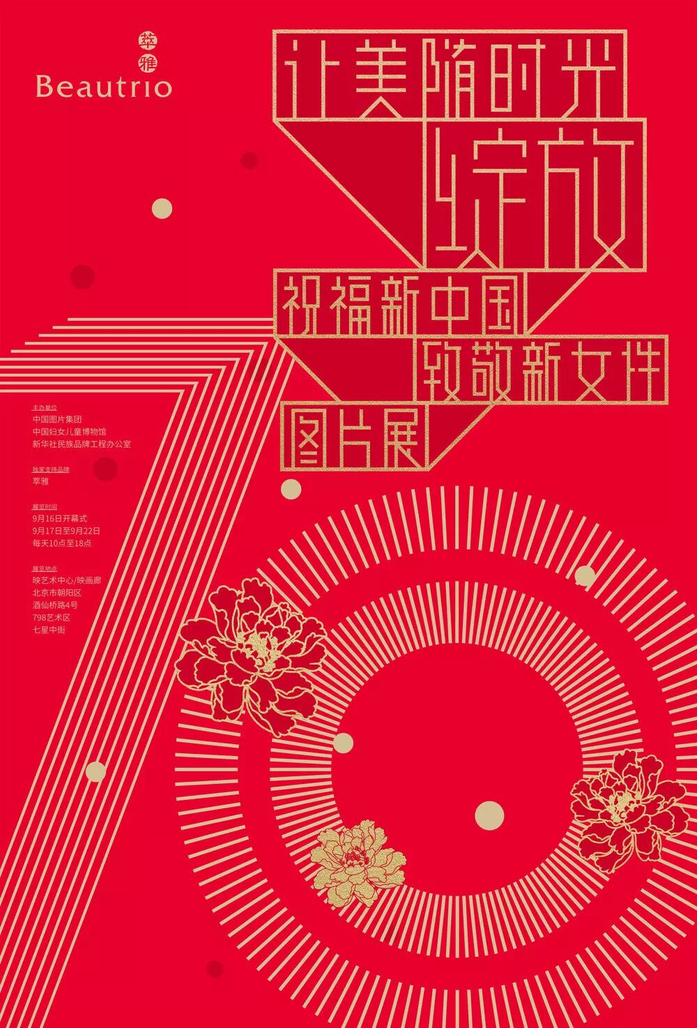2019年,是新中国成立70周年,也恰逢是萃雅品牌十周年生日。9月16日,《让美随时光绽放——祝福新中国,致敬新女性》全国图片巡展的首展将在北京映艺术中心启动。本次巡展由中国图片集团、中国妇女儿童博物馆、新华社民族品牌工程办公室主办,萃雅为支持品牌,展览将分别在北京、沈阳、上海、成都、长沙和广州六大城市举办。 新中国成立70年来,从工业到农业,从文教卫到科学技术,从外交到内政,从工厂矿山到农村山寨,从领导机关到普通百姓,各行各业涌现出了一批批的杰出女性,她们巾帼不让须眉,她们是大时代的见证者,也是大时代的参与者。 新时代的女性如何面对全新且未知的挑战,如何展现直面生活的勇气和定义属于自己的“美”成为了重要的命题。萃雅希望通过支持此次主题展览,让观众从当今的视角去再次解读这些杰出女性,通过对她们的致敬与思考展望未来,助力当下新时代的女性发现“美”的意义,寻找“美”的真谛。 9月16日,让我们相约《让美随时光绽放——祝福新中国,致敬新女性》全国图片巡展,共同去发现新时代女性的美!