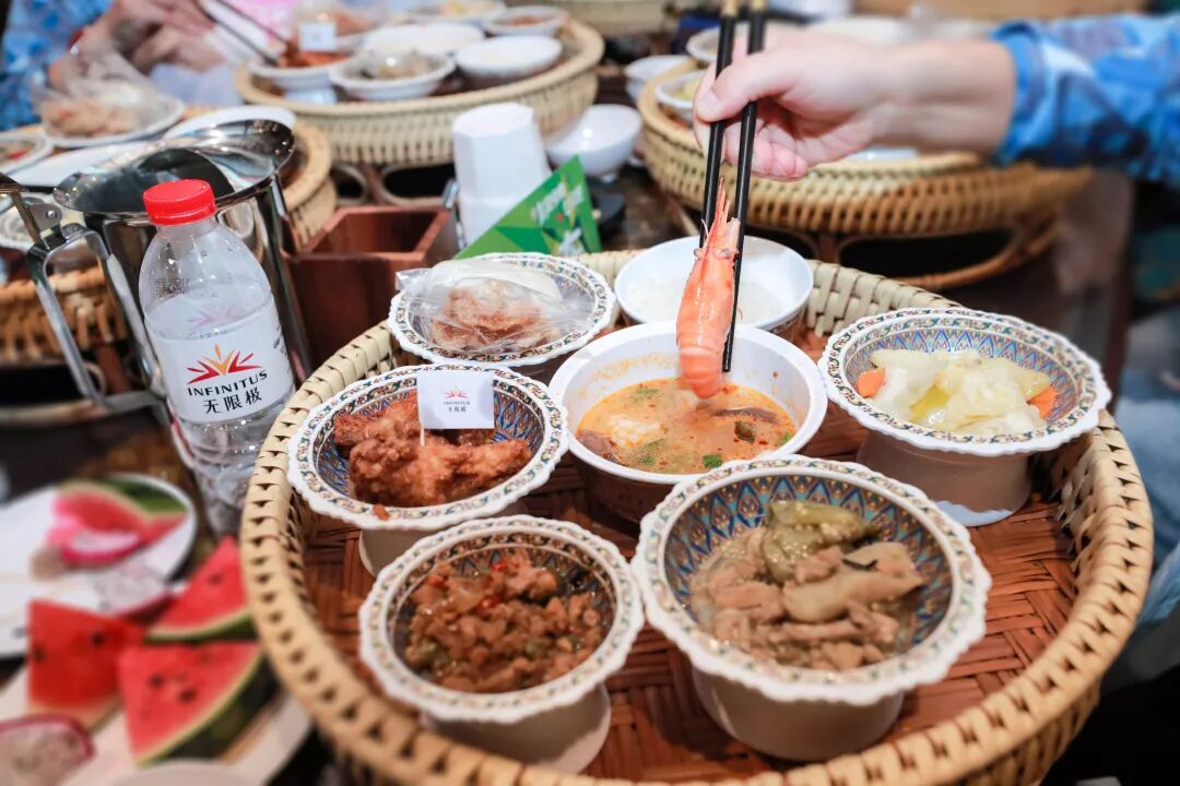 在古城内,公司还为伙伴们准备了一份特别的欢迎礼物——美味的泰北风味餐(原名为兰纳帝王餐,是泰国有名的宫廷料理)。伙伴们品尝着这份昔日供奉王室的美味佳肴,欣赏着泰北民族歌舞,内心也收获着他们这一年来辛苦耕耘的“硕果”。