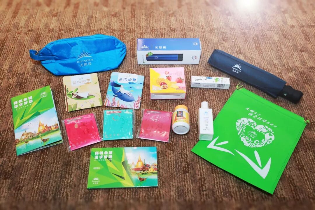 发现有些出行必备品没有带?没关系,打开礼品袋,公司早为大家准备好了各类旅行必备用品。这些贴心的安排和服务,让大家感受到了“客企一体”的温暖。