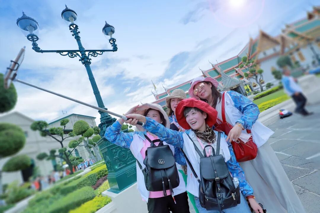 大家流连于各处景点,大皇宫金碧辉煌的异国建筑让人震撼!“还愣在那儿干嘛,赶紧一起来合照吧!”美美的合照机会,伙伴们当然不会错过。