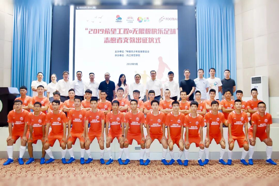9月23日,“2019年希望工程•无限极快乐足球志愿者出征仪式”在内江师范学院举行,29名志愿者经过为期一周的专业培训,完成了足球教学方法、战术训练、公益理念教育等课程。这些课程将帮助他们更好地培养孩子们包容、奉献、互助、自省的品质,以及沟通意识和团队意识。