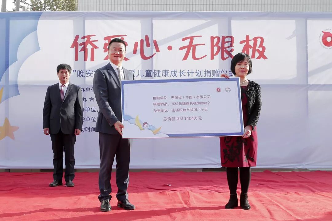少年强,则中国强。自9月起,无限极在全国各地举办多场“晚安宝贝”公益活动,帮助孩子们改善睡眠质量与营养状况,让孩子们健康、快乐地成长。 为更精准帮扶到有需要的少年儿童,10月17日,无限极携手中国侨联、中国华侨公益基金,聚焦新疆深度贫困地区,发起“侨爱心·无限极‘晚安宝贝’关爱儿童健康成长计划”。 项目捐赠仪式在新疆维吾尔自治区阿克苏市第二小学举行,中国侨联基层建设部副部长刘景春先生,新疆自治区侨联副书记、副主席吴晓青女士,阿克苏地委委员艾则孜·买提尼牙孜,思利及人公益基金会副主席、无限极(中国)有限公司高级副总裁黄健龙先生等嘉宾出席了捐赠仪式。 活动现场,黄健龙先生代表无限极为该地区的贫困小学生捐赠享优乐牌成长枕和无限极牌盖乐星冻干水果脆溶片。 刘景春先生指出:“助力深度贫困地区的青少年健康成长,充分展现了涉侨基金会和侨资企业对祖国的拳拳爱心以及强烈的社会责任感。‘晚安宝贝’项目也将为精准扶贫事业提供创新的模式和良好的实践,为孩子们创造更加美好的明天。” 吴晓青女士表示:“期待有更多像无限极这样的热心公益事业的侨企,参与到新疆的经济和社会建设中来,共赢‘一带一路’新机遇,共谱民族繁荣新篇章。” 艾则孜·买提尼牙孜先生在发言中表示:“希望受赠学校以这次捐赠活动为契机,在广大学生中开展感恩教育,让受赠孩子将党和政府以及社会各界的关爱,转化为好好学习,天天向上的动力。饮水思源,用实际行动传递爱心,回报社会。” 黄健龙先生提到:“支持公益事业的发展,一直是无限极重点关注的领域。多年来,无限极开展了‘思利及人助学圆梦’、‘无限极快乐足球’、‘养生行走暨健康嘉年华’等公益项目,带动员工和经销商积极参与志愿服务。‘晚安宝贝’活动,将进一步发挥无限极丰富的公益项目经验和健康领域的独特优势,助力孩子们健康、快乐地成长。” 在现场嘉宾和师生的见证下,黄健龙先生代表公司将物资牌匾交接给吴晓青女士。 紧接着,刘景春先生亲手将锦旗授予黄健龙先生。 在全场热烈的掌声中,捐赠仪式圆满结束。未来,相信在社会各界的共同努力和关怀下,贫困地区孩子们的健康水平将会逐步改善,小草终会成长为一棵棵挺拔的大树。 多年来,无限极秉承“思利及人”的核心价值观,通过思利及人公益基金会启动多个爱心项目活动,如 “思利及人助学圆梦”“无限极快乐足球”等,帮助贫困地区的孩子们改变现状,勇敢追梦。 本次“晚安宝贝”关爱儿童健康成长计划,是无限极传递爱心的又一行动。未来,无限极将继续以实际行动助推精准扶贫,提升贫困青少年儿童的健康水平,为构建和谐社会贡献力量!
