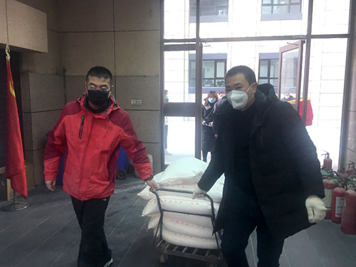 2月24日上午,爱心志愿者将1250斤面粉运到城关区机关事务管理局进行再次加工,城关区机关服务保障中心主任陈俞霖代表城关区党政机关事业单位接受了捐赠物资,并代表一线防控工作者表示了衷心的感谢,为爱心人士颁发感谢信,同时表示这1250斤面粉将全部加工为成品面点后送往防疫一线。