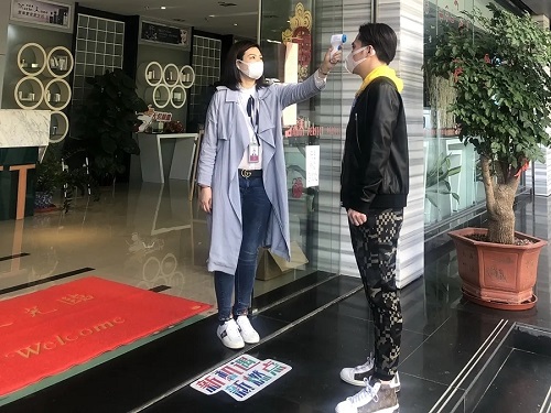 严格控制人员出入,测温、消毒、核对、登记、戴口罩……认真执行每个步骤。办公场所、设备设施等,由专人进行定期消毒。