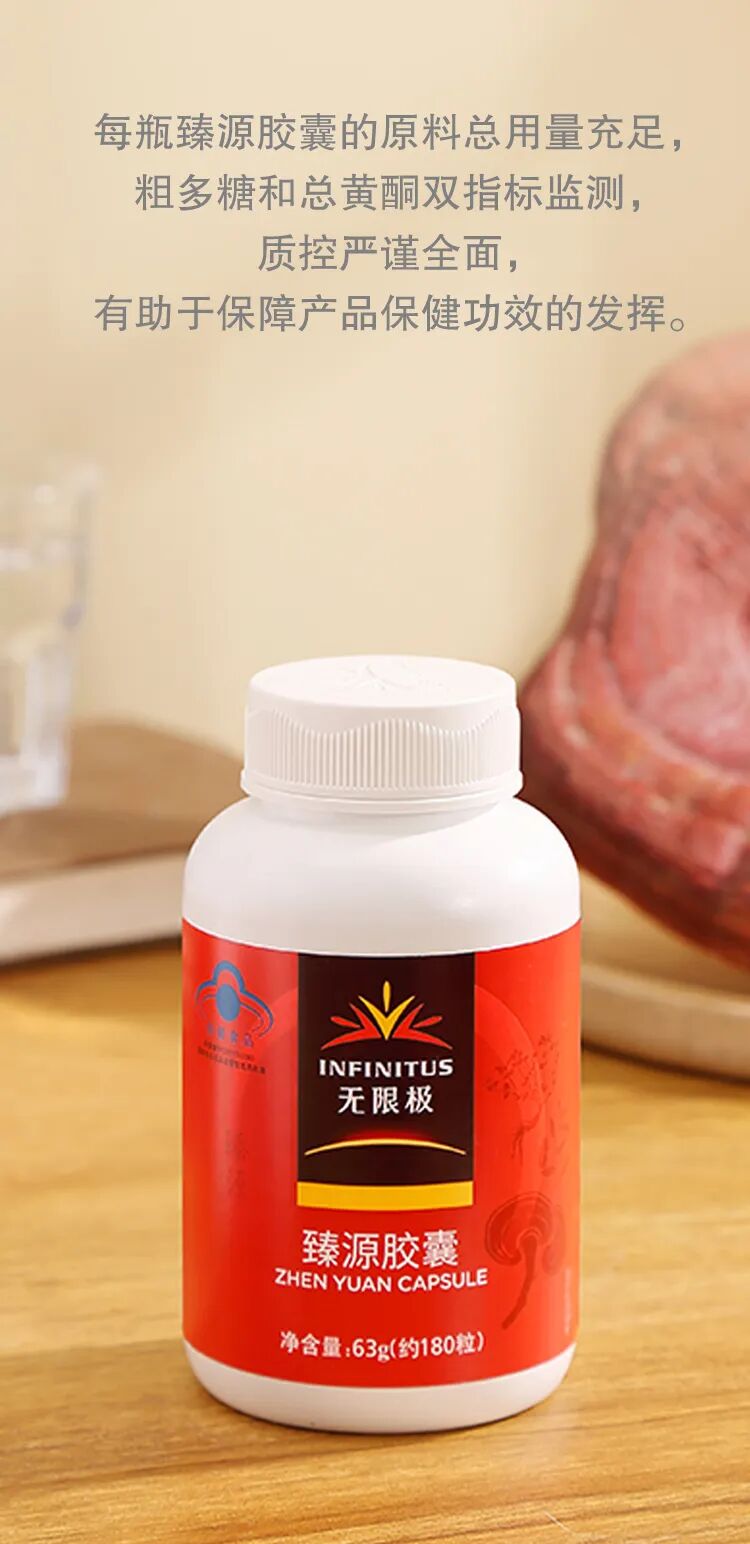 臻源胶囊是以灵芝、五味子、菟丝子、茯苓、党参、白术等为主要原料制成的保健食品,具有增强免疫力和抗氧化的双重保健功能。通过技术升级和长期探索与研究,臻源胶囊的多糖提取、检测、干燥得到进一步优化,每瓶臻源胶囊的原料总用量充足,粗多糖和总黄酮双指标监测,质控严谨全面,有助于保障产品保健功效的发挥。