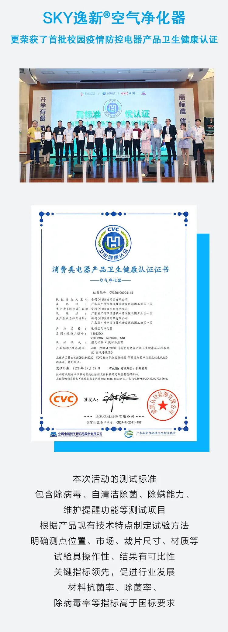 安利 SKY逸新®空气净化器荣获首批校园疫情防控卫生健康认证