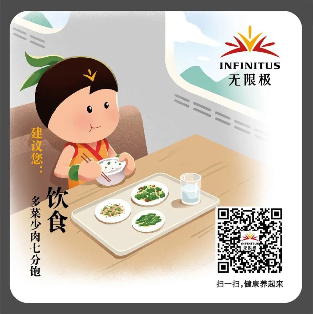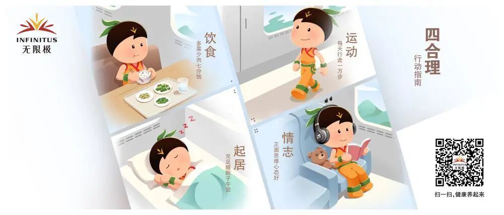 京沪线上的无限极高铁专列,每一个座位的头片,都印制着无限极携手央视公益广告部共同打造的公益宣传《健康生活·四合理》;而在椅背的小桌板上,阿健用行动告诉大家,在列车车厢里就可以践行“饮食/起居/运动/情志”四合理生活!