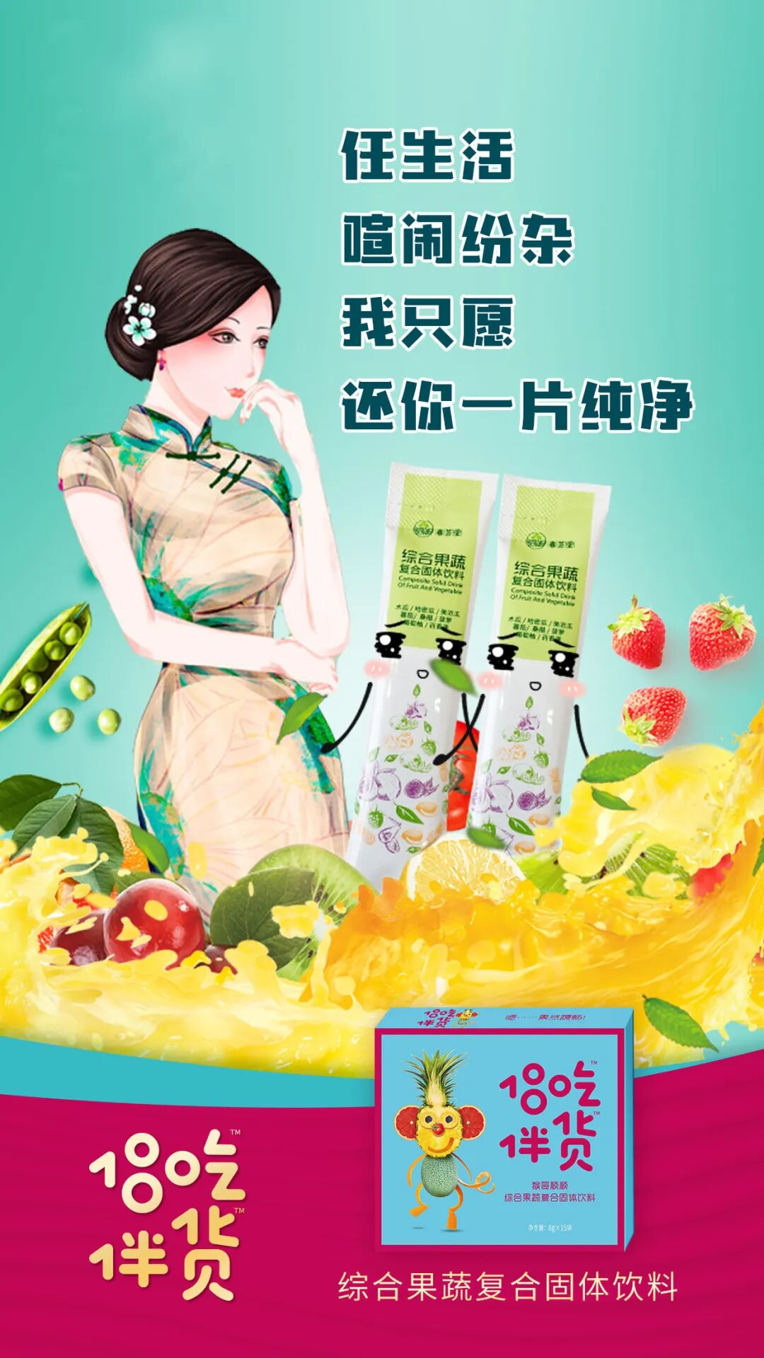 你们的新朋友,#吃货伴侣#家族的猴哥顺顺,带着综合果蔬复合固体饮料(以下简称果蔬粉)来喽~升级后的果蔬粉,不仅有个全新的形象,“肚量”也比以前更大了~12支升级↑↑↑为15支!!关键是,加量不加价!就问你心动不心动?!