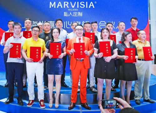 此次,MARVISIA玛维莎私人定制创新推出的优惠合伙政策,吸引了众多合伙人踊跃加盟MARVISIA玛维莎私人定制上海尚嘉中心旗舰店。庆典现场,25名合伙人签约代表依次登台,与绿叶科技集团创始人、董事长,玛维莎国际时装有限公司创始人、董事长徐建成正式签署协议。在全场观众的共同见证和镜头的记录下,MARVISIA玛维莎私人定制上海尚嘉中心旗舰店荣耀启动。