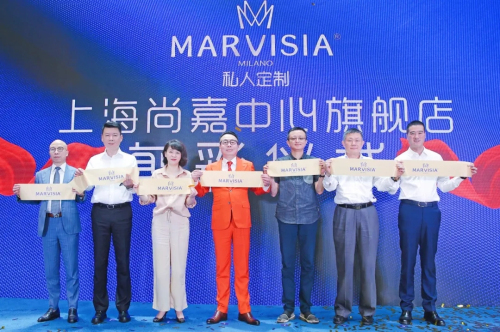 今天上午10点18分,MARVISIA玛维莎私人定制上海尚嘉中心旗舰店盛大开业。玛维莎国际时装有限公司董事长徐建成、总经理徐勇及200多位MARVISIA超级VIP客户出席开业庆典,MARVISIA玛维莎私人定制品牌宣传片惊艳亮相大荧幕。