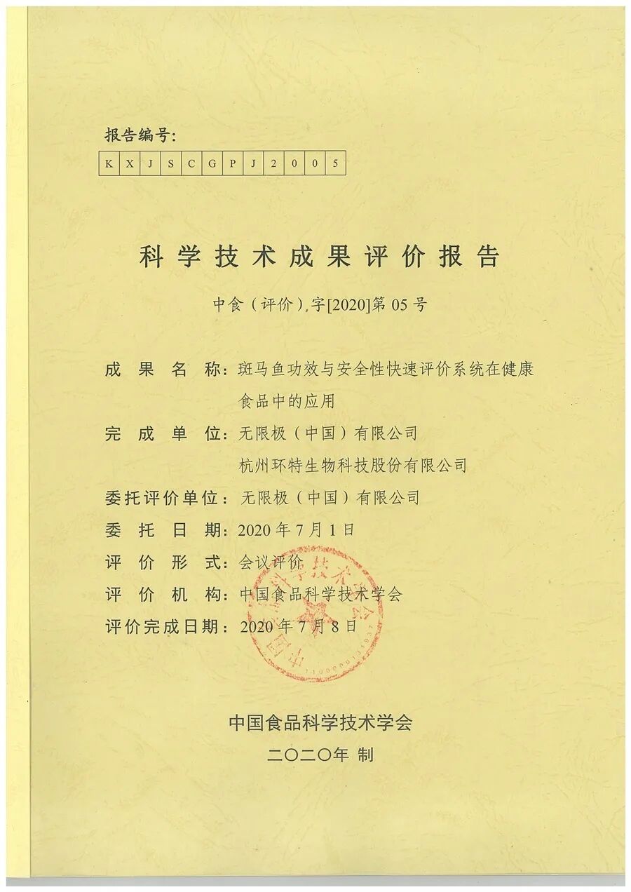 今年7月8日,无限极(中国)有限公司联合杭州环特生物科技股份有限公司共同研发的“斑马鱼功效与安全性快速评价系统在健康食品中的应用”项目,在北京通过了由中国食品科学技术学会组织的科技成果评价,受到来自食品、医药、营养、安全等多个领域权威专家一致认可。