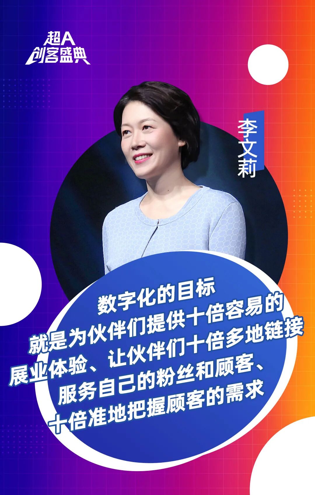 她谈到,数字化的目标就是为伙伴们提供十倍容易的展业体验、让伙伴们十倍多地链接服务自己的粉丝和顾客、十倍准地把握顾客的需求,帮助伙伴打破地域限制、打破社交圈的瓶颈和发展的天花板去创业: