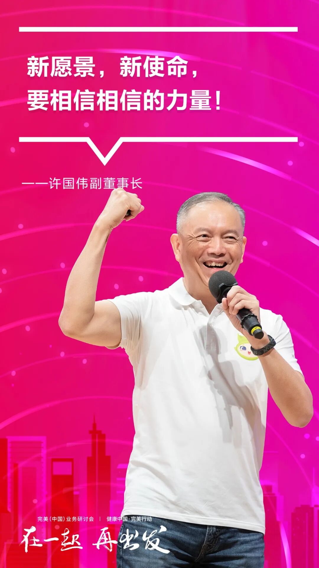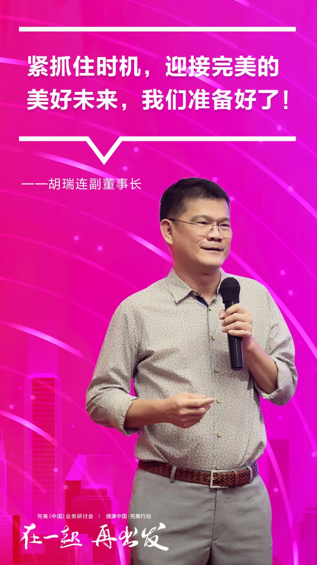 完美有未来,伙伴才有未来,伙伴有未来,完美未来会更好。完美将继续承担企业社会责任,扎根中国,以恒心办恒业,坚持“三个不变”,深耕中国市场。大家拿出完美精神来,团结就是力量,让我们在一起,再出发!