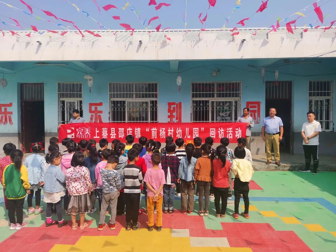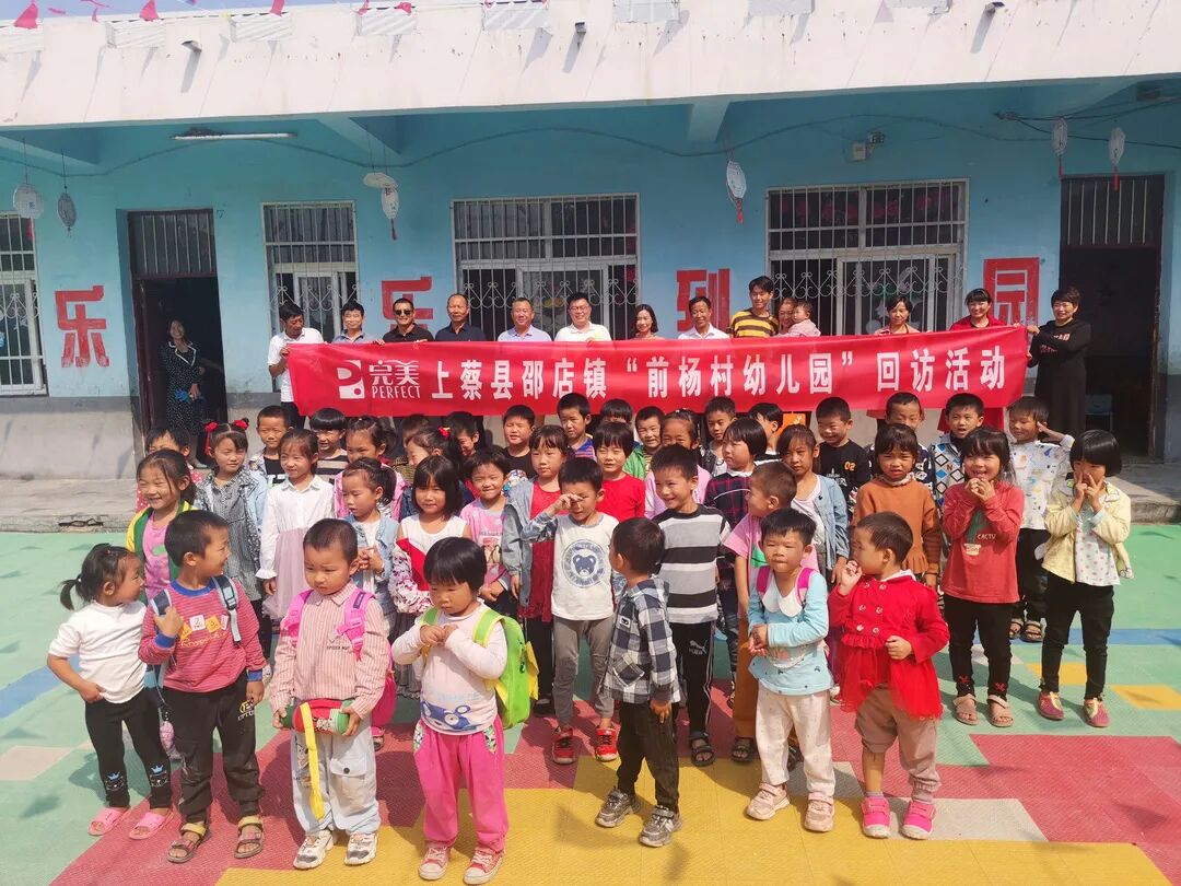 在国庆节、中秋节即将到来之际,完美河南分公司、平顶山办事处分别前往濮阳市范县张庄乡张沙窝村完美希望小学、驻马店市上蔡县韩寨乡张市店村完美希望小学、上蔡县邵店镇前杨村幼儿园开展双节回访系列活动。