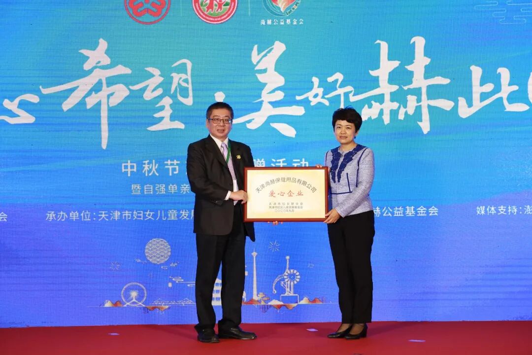 今年活动中,共有102位自强单亲母亲获得了尚赫公益基金会的公益捐款。黄春华秘书长代表天津市妇女儿童发展基金会接受尚赫公益基金会的爱心捐赠。同时,天津市妇女联合会副主席贾雪娜为天津尚赫保健用品有限公司授予“爱心企业”荣誉称号。