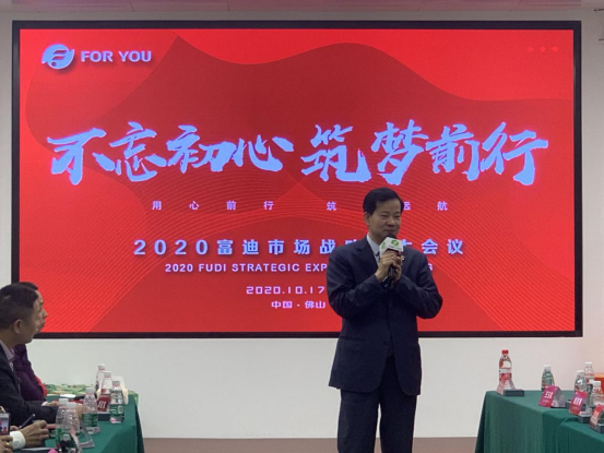 10月17日-18日,“不忘初心 筑梦前行”-《2020富迪市场战略扩大会议》在富迪高明生产基地举行。富佑集团董事局主席陈怀德先生、广东省富迪慈善基金会理事长胡静女士、长成国际商学院院长金子老师、以及来自全国各地的富迪家人们参加了本次会议。现场人员顿时热情高涨,这意味着富迪蓄势待发,必将创下大时代的业界神话。