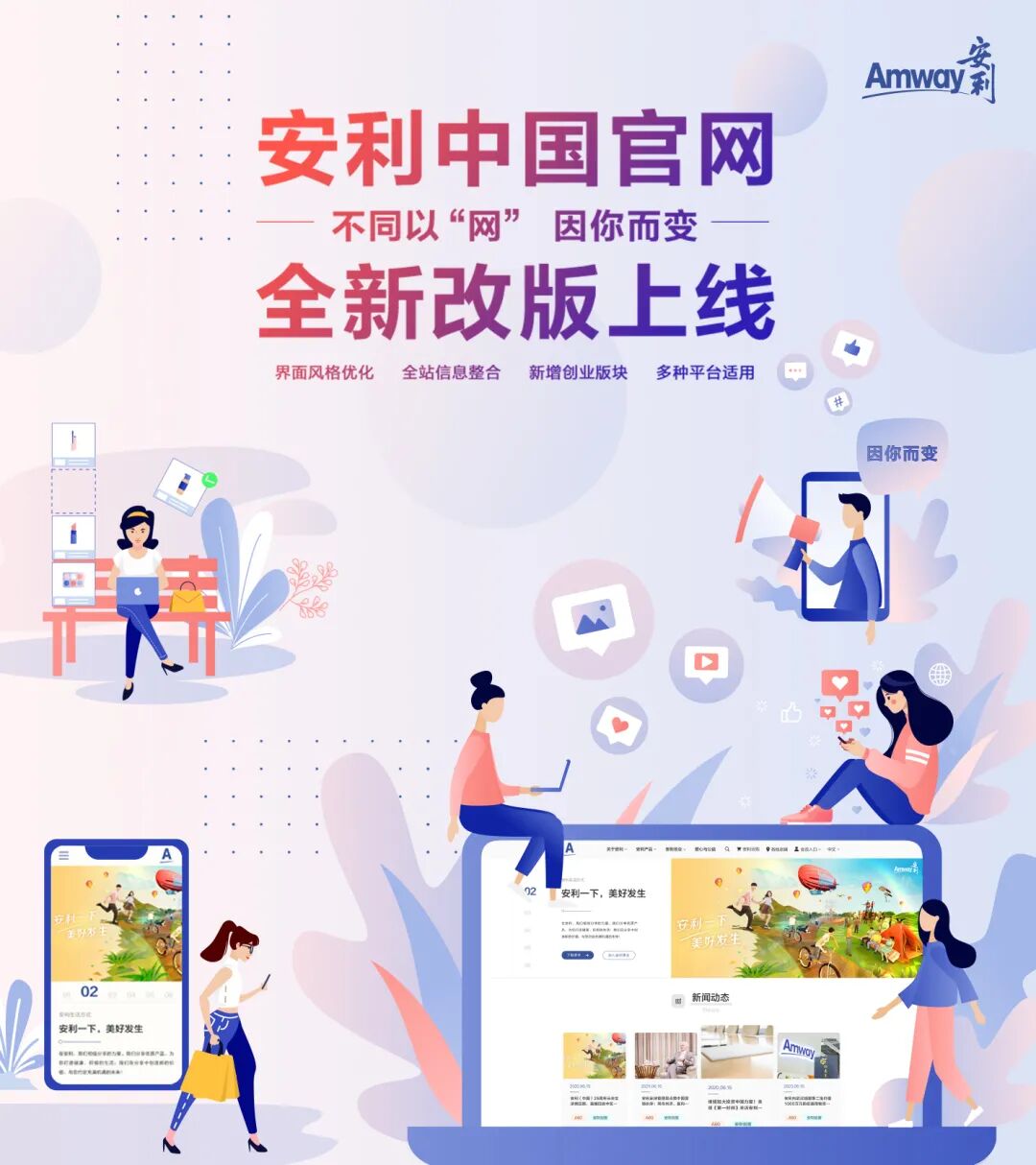去年, 安利品牌启动了品牌升级, 今年,我们继续为大家 奉上喜大普奔的升级福利: 噔噔噔,它就是全新的安利(中国)官网! 距上一次改版时隔五年之久, 这一次,我们想用 全新的界面视觉、 清晰的展示结构、 交互式呈现方式, 带来一个有温度、易操作的 新安利形象展示和资讯交互平台! 让我们来一睹它的亮点风采~ 界面风格优化,赏心悦目 首先, 新官网让人眼前一亮的就是它的视觉风格, 整体风格更偏生活方式化, 设计追求小而美,精简而悦目, 重点突出,色彩柔和, 分分钟就能把浏览官网这件事, 变成轻松愉悦的视觉享受。 全站信息整合,清晰明了 怎样才能一眼找到想要的信息? 本次官网升级的最大亮点之一, 就是从用户视角出发, 各个栏目排列更加清晰, 同时减少了信息层级, 让浏览更简单、查询更便捷, 更轻松get各种花样资讯。 新增创业版块,丰富便捷 进入官网,您可以通过 “关于安利”、“安利产品”、 “爱心与公益”等版块, 全方位洞悉安利资讯。 此次官网升级, 还新增了“安利创业”版块内容, 品牌内涵更完整、更充实。 更多精彩,等你来解锁! 适应多种平台,一览无余 相较于之前的版本, 新版官网能实现PC端、 Pad端、手机端的兼容, 真正地做到了全屏宽展示, 无论你身处何地, 使用何种设备, 都可以顺畅浏览、尽情冲浪~