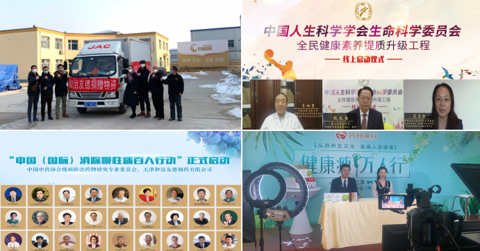 2020年新冠疫情期间,和治友德公司快速积极响应,将价值310万元的爱心物资第一时间送达武汉火神山医院、天津市47家定点机构和发热门诊医院以及宝坻区各检查站卡口等抗疫一线,以实际行动为抗击疫情贡献力量。公司还通过策划组织“全民健康素养提质升级工程”、“中国(国际)消除慢性病百人行动”、“健康瘦万人行”等健康公益活动,为提升广大居民健康素养水平,加强慢性病防治工作,降低疾病负担,努力全方位、全周期保障人民健康而不懈努力。