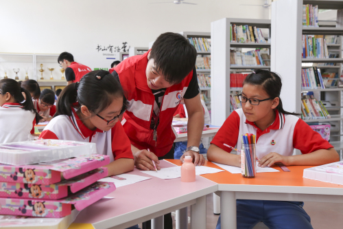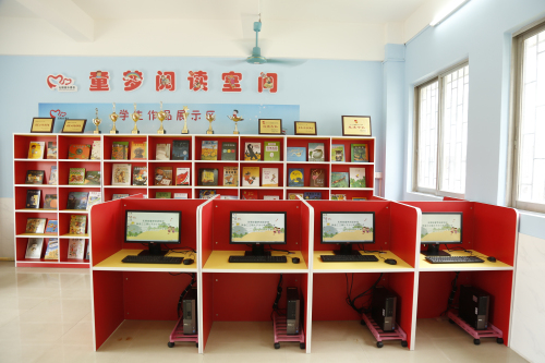 2015年,乐善会“童梦阅读空间”项目正式启动,第一所就选址在开平沙塘学校·思义校区。在乐善会的帮助下,原本破旧的图书馆“大变样”,孩子们有了新的图书、书柜、桌椅,还有了电子阅览设备。