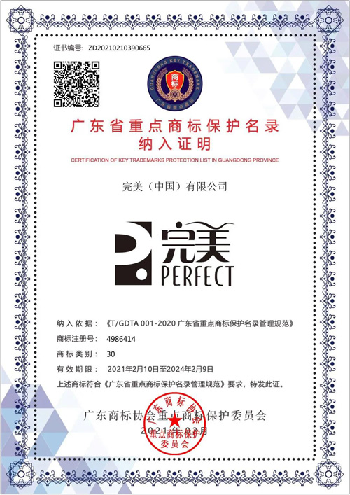 近日,经广东商标协会重点商标保护委员会严格评审,完美公司2件核心商标被纳入首批广东省重点商标保护名录,这是广东省商标领域对于我司商标价值管理、法律保护、规范运用效果的肯定,彰显了完美公司对商标品牌建设与知识产权管理的高度重视和优秀成果。