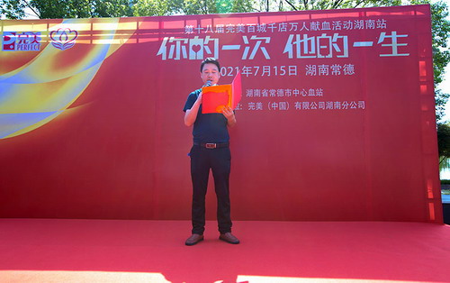 完美湖南分公司总经理陈涛为本次活动致辞,他表示,作为一家从事大健康科技产业的企业,完美在提供优质产品及服务的同时,不仅积极融入社会的建设与发展,更是在公益事业方面带动了一大批完美伙伴投入爱心公益事业。今天的公益献血活动,感谢血站及血站领导支持的同时,更要感谢完美常德地区的伙伴和朋友们。他还表示,因为大家的奉献,才使得更多生命重获新生,再获健康;因为大家的奉献,社会将变的更加友善;也因为人人参与公益,大家的生活才变得更加美好。完美的公益事业也将因为大家都参与,而更加壮大!