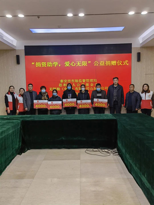 1月8日,“捐资助学,爱心无限”公益捐赠仪式在泰安举办。本活动自2016年起,秉着“思利及人”核心价值观,致力于解决贫困学生在学习上、生活中的困难,并鼓励学生勇于追梦,回馈社会,持续传递温暖和爱心。