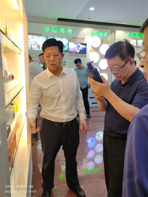 在公司文化展厅,沙棘系列保健品、食品、饮品、药品、化妆品等百余款产品引起李晓安副主席高度关注,对产品生产工艺及功能进行反复了解,对先进的生产设备、专业的研发技术及质量管理等给予充分肯定。