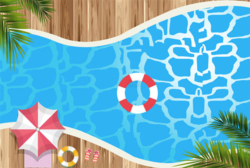 4.看游泳池水质,合格的游泳池池水应清澈透亮,池底清晰可见,且水上无漂浮物。