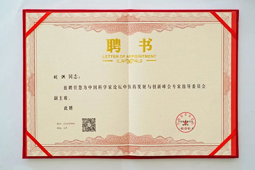 双迪公司董事长刘洪获“中医药发展与创新峰会专家指导委员会副主席”荣誉
