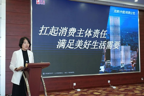 完美公司法务外事中心总监兼区域总经理朱晓琳代表公司,以“扛起消费主体责任,满足美好生活需要”为主题进行发言,着重阐述了完美公司坚守消费者至上的原则,宣传公平公正的消费理念及营造安全放心的消费环境,协作联动线下打击假冒伪劣产品,引导消费者正确、理性消费以及指导消费者如何鉴别产品真伪,企业坚持诚信经营、守法经营,为消费者提供满意的服务和优质产品。