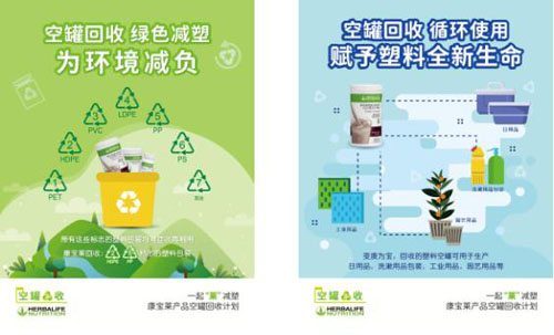 今年6月5日第51个世界环境日之际,康宝莱宣布在中国启动“一起‘莱’减塑——康宝莱产品空罐回收计划”环保公益项目。项目鼓励康宝莱顾客将产品空罐送到参与回收项目的营养俱乐部,再由全球资源优化管理领域的专业机构处理后成为等同于原生塑料质量的日用品、洗护用品包装和工业用品等的原料,实现消费后塑料的循环使用。