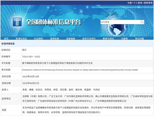传统的免疫功能评价方法是采用环磷酰胺诱导构建免疫力低下小鼠模型。环磷酰胺是一种化疗药,能直接损伤免疫细胞。但是,现代人的免疫力低下,更多是由于焦虑,压力、失眠、长期熬夜等不健康的生活方式造成的。为了更精准地应对不良生活方式造成的免疫力低下问题,获得更有针对性的提升免疫力产品,满足大众的健康需求,无限极研发团队采用睡眠剥夺的方式构建免疫力低下小鼠模型,并经过多年的研究,使之成为一个标准化的免疫功能评价方法。该团体标准的发布,给行业提供了一种更具优势的免疫功能评价方法,能促进保健品行业的高质量发展。