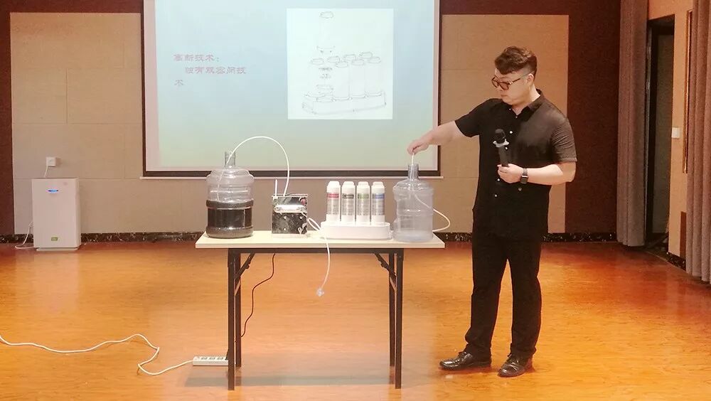 随后,活动在全场家人们共同演绎的舞蹈《绿韵战歌》中缓缓拉开序幕。绿之韵集团市场管理中心业务总经理曹兵先生为大家带来了《绿韵养生》《走进绿之韵》《空气净化器》《净水机》等养生课程,空气净化器和水机的现场实验也让大家亲身体会到了公司产品的实力。齐鲁联盟领袖徐志敏老师为大家带来了《共振活水仪》的讲解,现场实验的效果不仅让大家了解了自己身体的亚健康状态,更让大家体会到了饮用共振活水仪的水对自己身体的好处。齐鲁联盟优秀领导人王占红老师为大家带来了《清调补衡》的课程,让在座家人们更加全面的了解公司的相关产品。最后,山东分公司业务主任张帅为大家讲解了《绿韵养生42天细胞修复》的课程,让家人们了解活动结束后应该怎样更好的复食,才能让我们的身体更加健康。